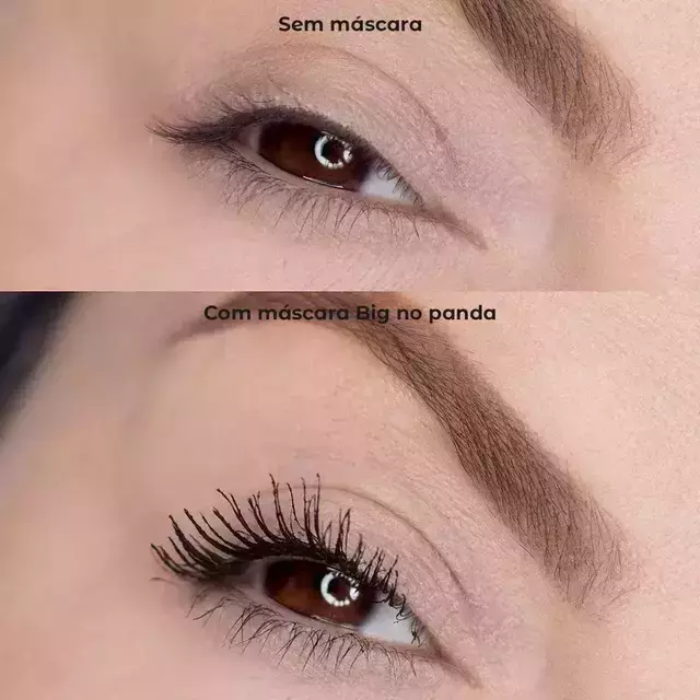 Máscara para cílios com efeito No Panda, que não mancha os olhos e sai facilmente com água morna em forma de película.